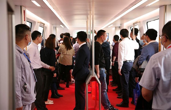 社会各界试乘磁浮三编组车辆
