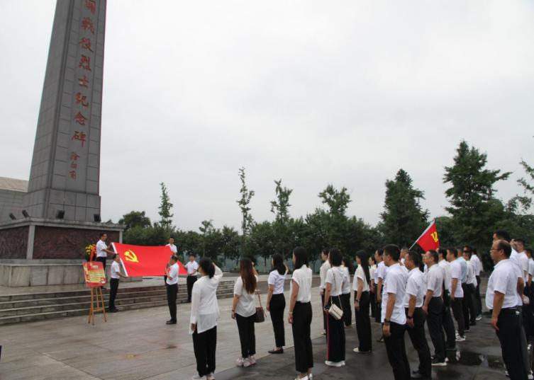 活动伊始,在烈士纪念碑前向革命先烈敬献花篮,公司党委副书记、总经理夏玉龙上前仔细整理花篮缎带,随后大家集体默哀,以此表达对先烈的深切缅怀与崇高敬意。紧接着,在鲜红的党旗前,由夏玉龙副书记领誓,全体党员高举右拳,庄严宣誓,铿锵有力的誓言彰显了大家为共产主义事业奋斗终身的坚定决心。